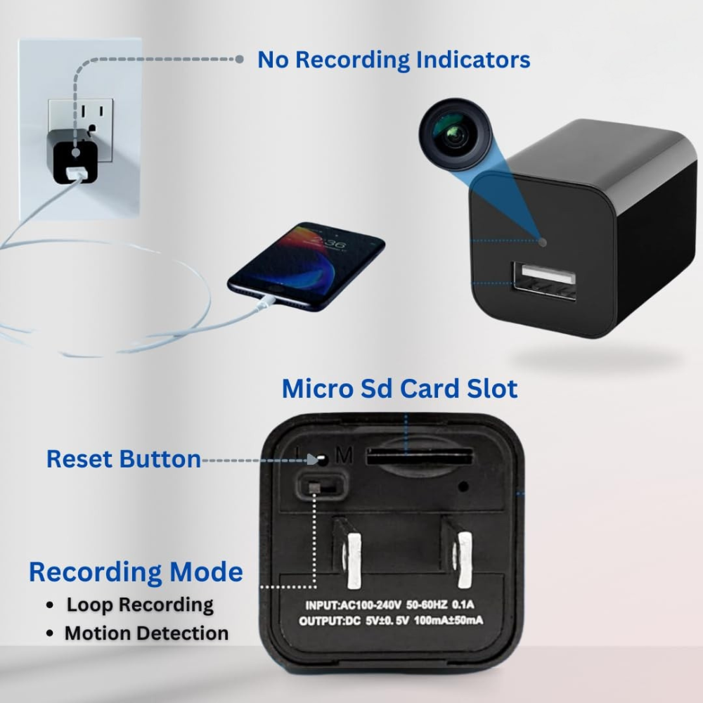 内部に隠された見えないスパイカメラ - 完全に溶け込むように設計されており、この充電器は通常の電話充電器のように機能しながら、1080x720 HDビデオを秘密裏に録画します。光も音もなく、標準の壁のプラグ以上のものだという明らかな兆候はありません。ナニー、従業員、または共有スペースの監視に最適です。
