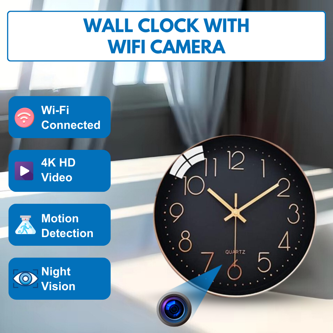 At first glance, it looks like a stylish wall clock, but hidden inside is a powerful WiFi camera with 1080p and 4K video quality. Equipped with night vision, motion detection, and remote viewing through a free app, it keeps you connected anytime. A discreet way to protect your family, monitor caregivers, or check in on your home without drawing attention.